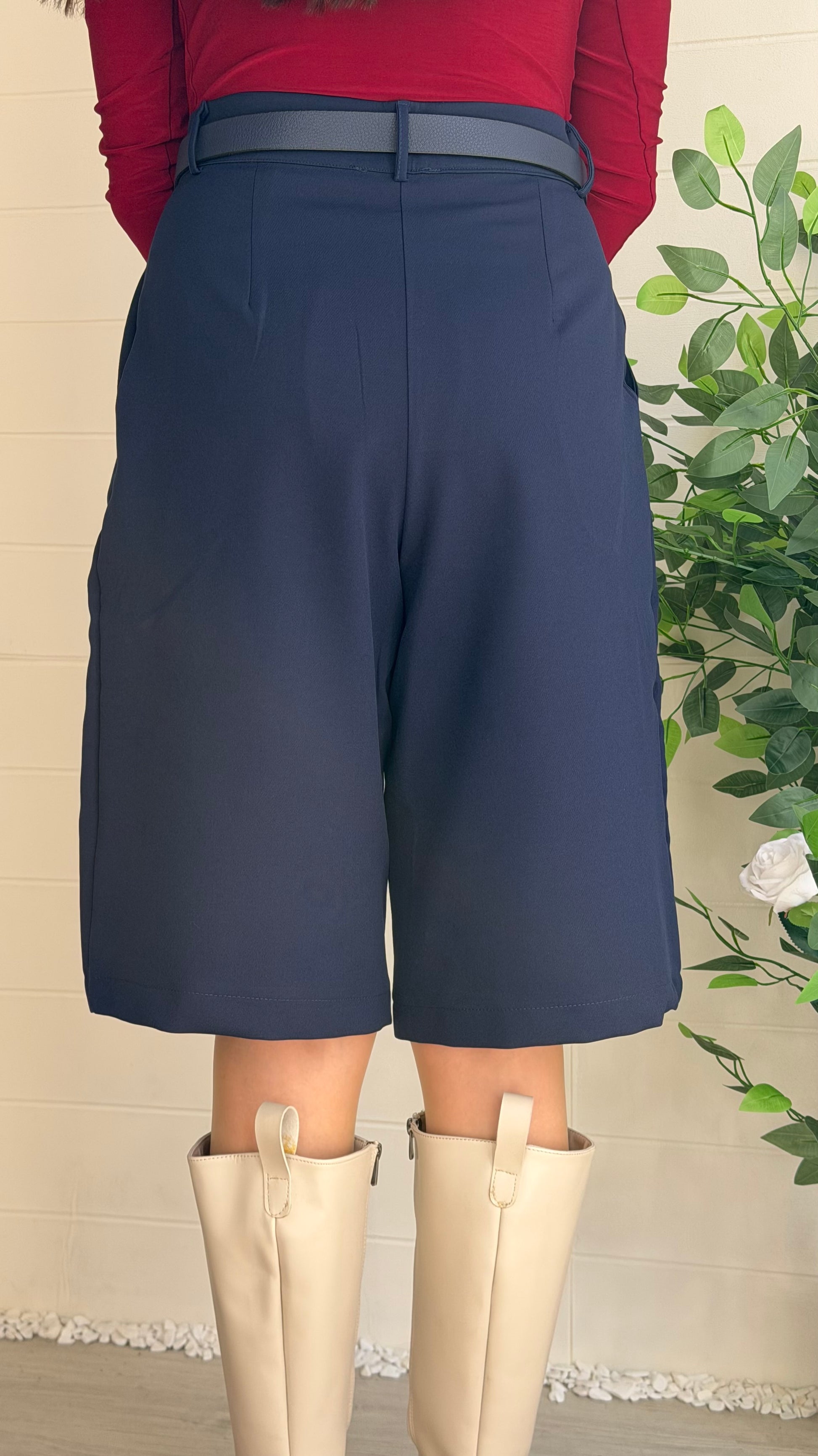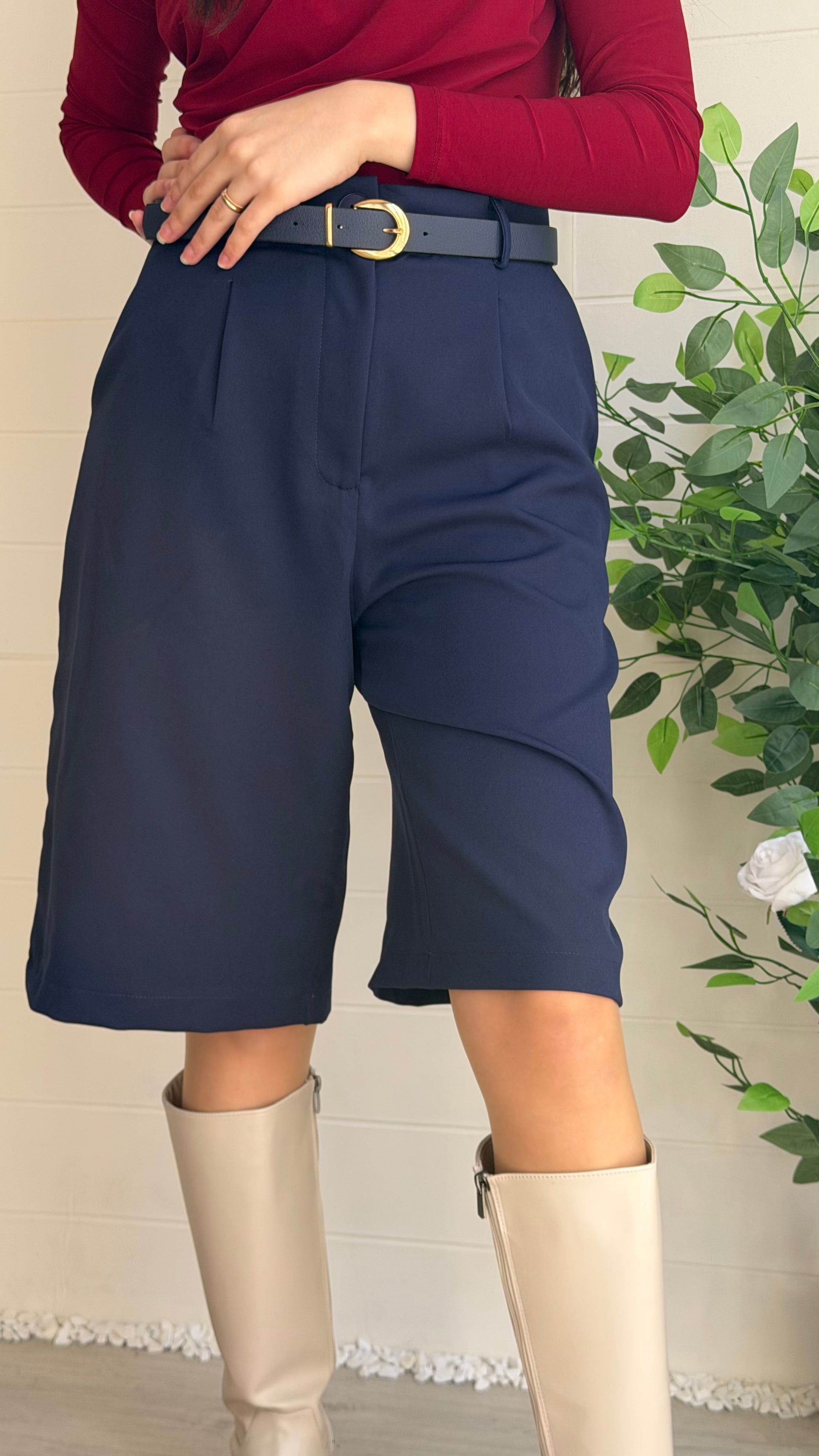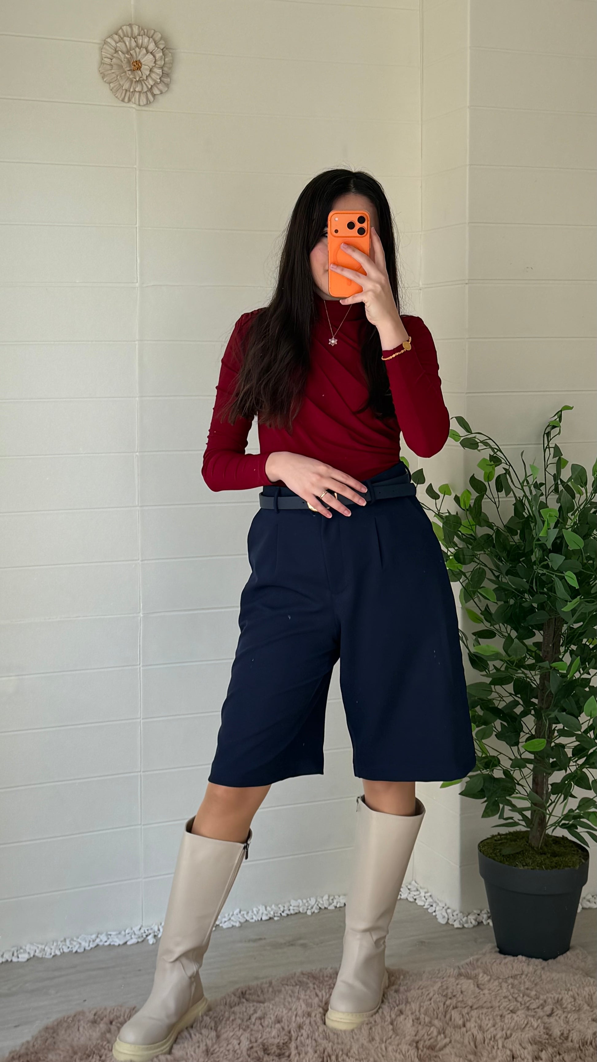 Yükselen belli, geniş paçalı bermuda tarzı şort. Akıcı ve hafif struktüre kumaşıyla günlük ve özel kombinlerde rahatlık sağlar. Etek görünümüne yaklaşan zarif ve sade bir siluet sunar.