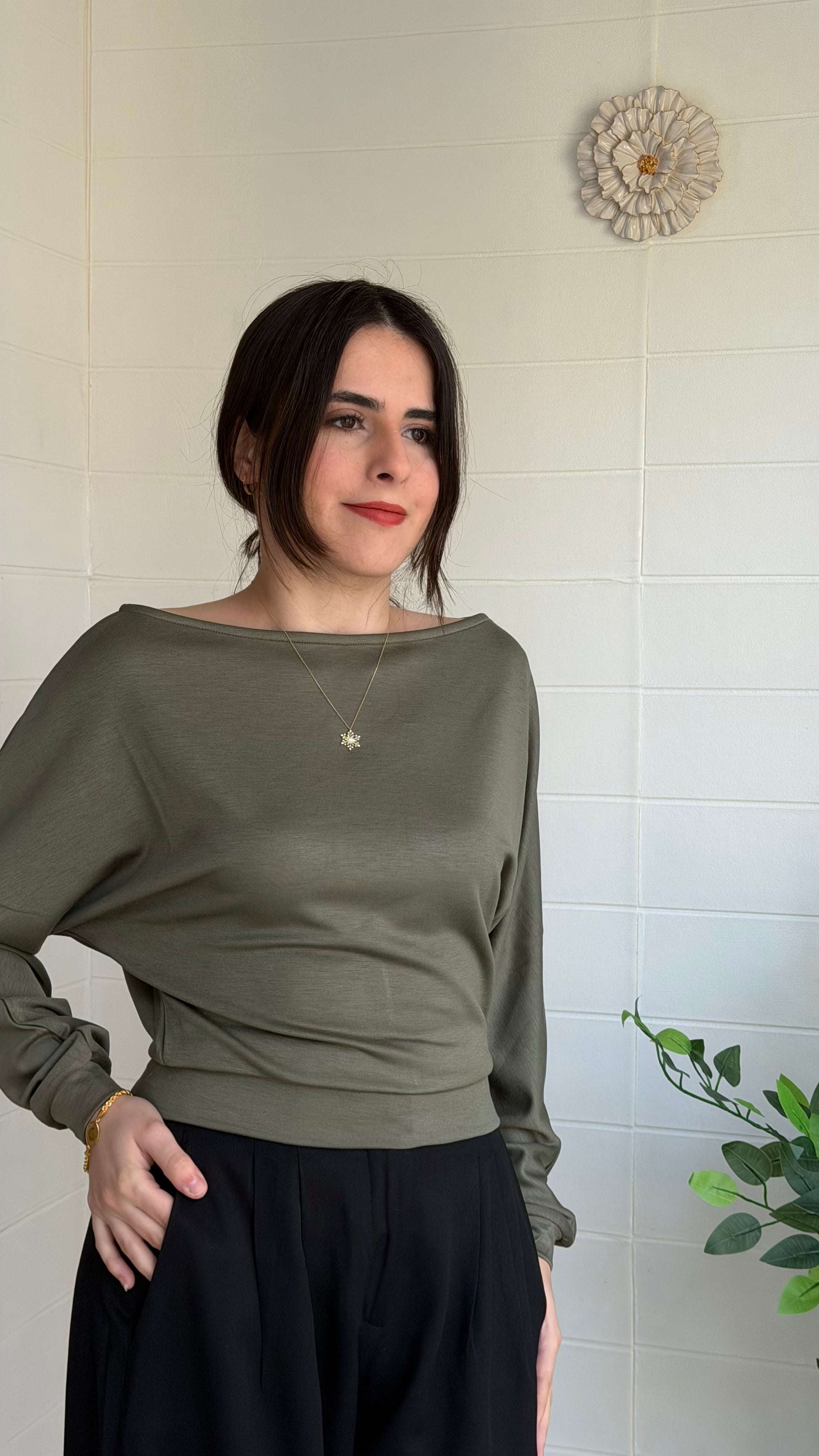 Drapeli detaylarıyla modern bir siluet sunan bu bluz, vücudu nazikçe sararak şık ve zarif bir görünüm oluşturur. Günlük kullanım ve özel kombinler için ideal, hafif ve akıcı bir parçadır.