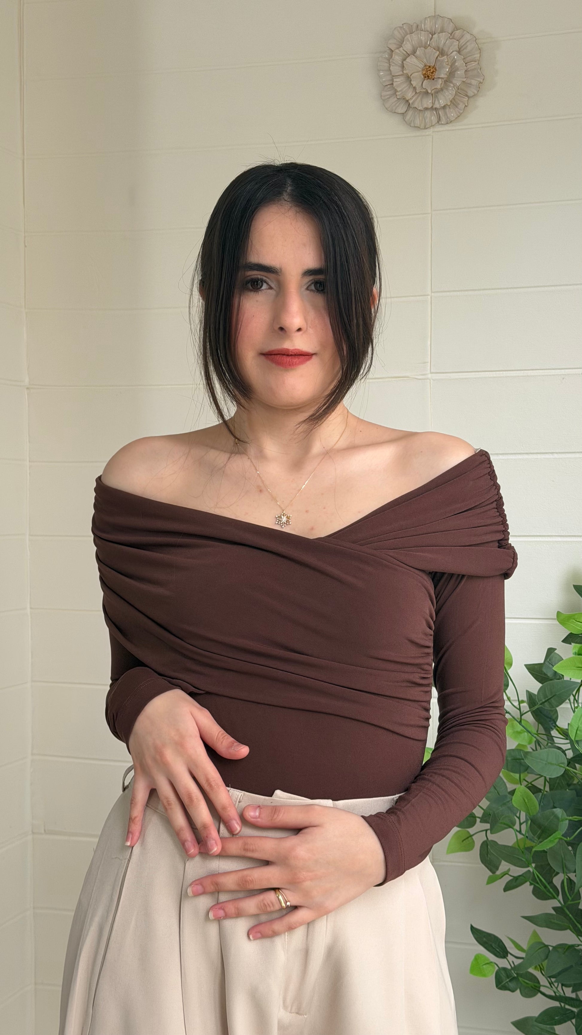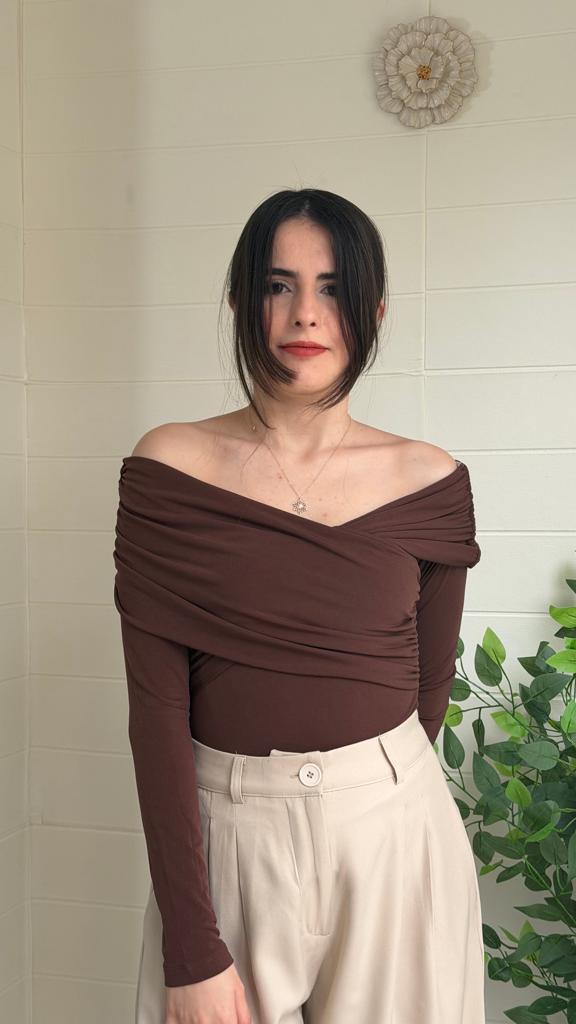 Yarasa kol tasarımı ve akışkan oysho kumaş yapısıyla zarif bir siluet sunan bu bluz, omuzlarda drapeli görünüm ve belden itibaren oturan kesimiyle modern bir duruş sağlar. Hafif yapısı sayesinde mevsim geçişlerinde konforlu kullanım sunar.