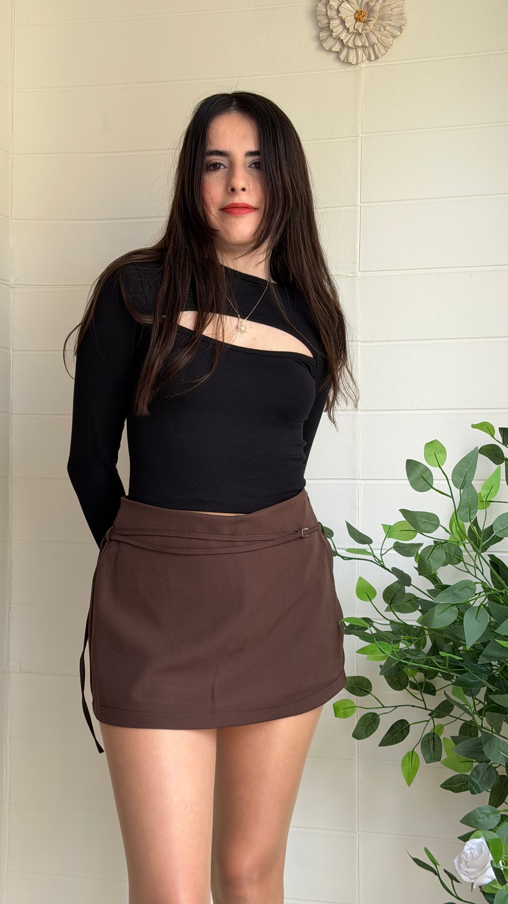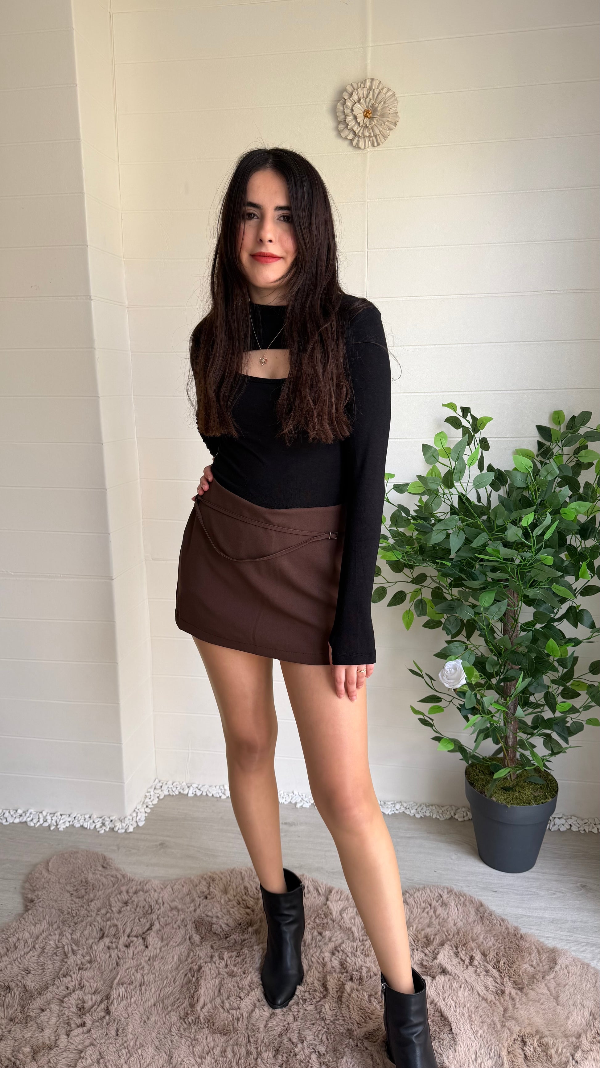 Kemerli, şık ve modern şort etek tasarımı. Yüksek bel /akışkan hatlar ile hareketli bir siluet yaratır. Günlük ve yarı-resmi kombinler için uygundur.