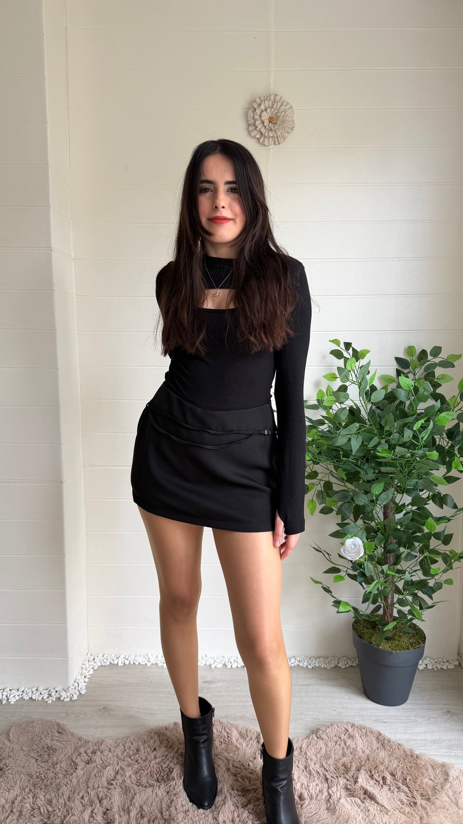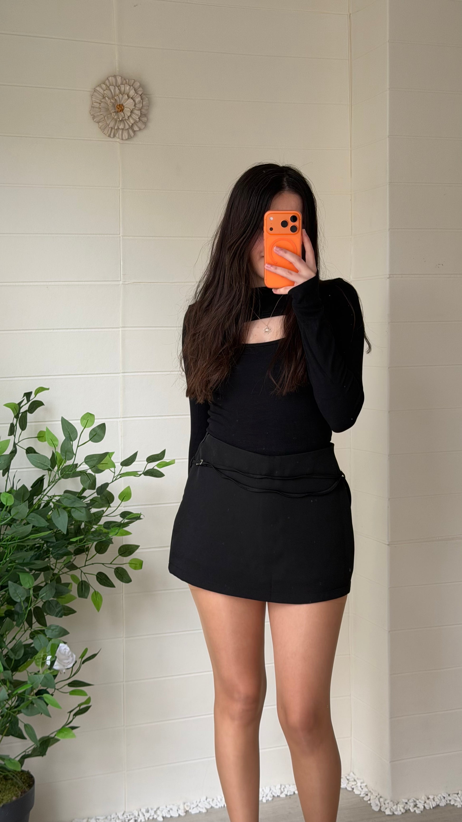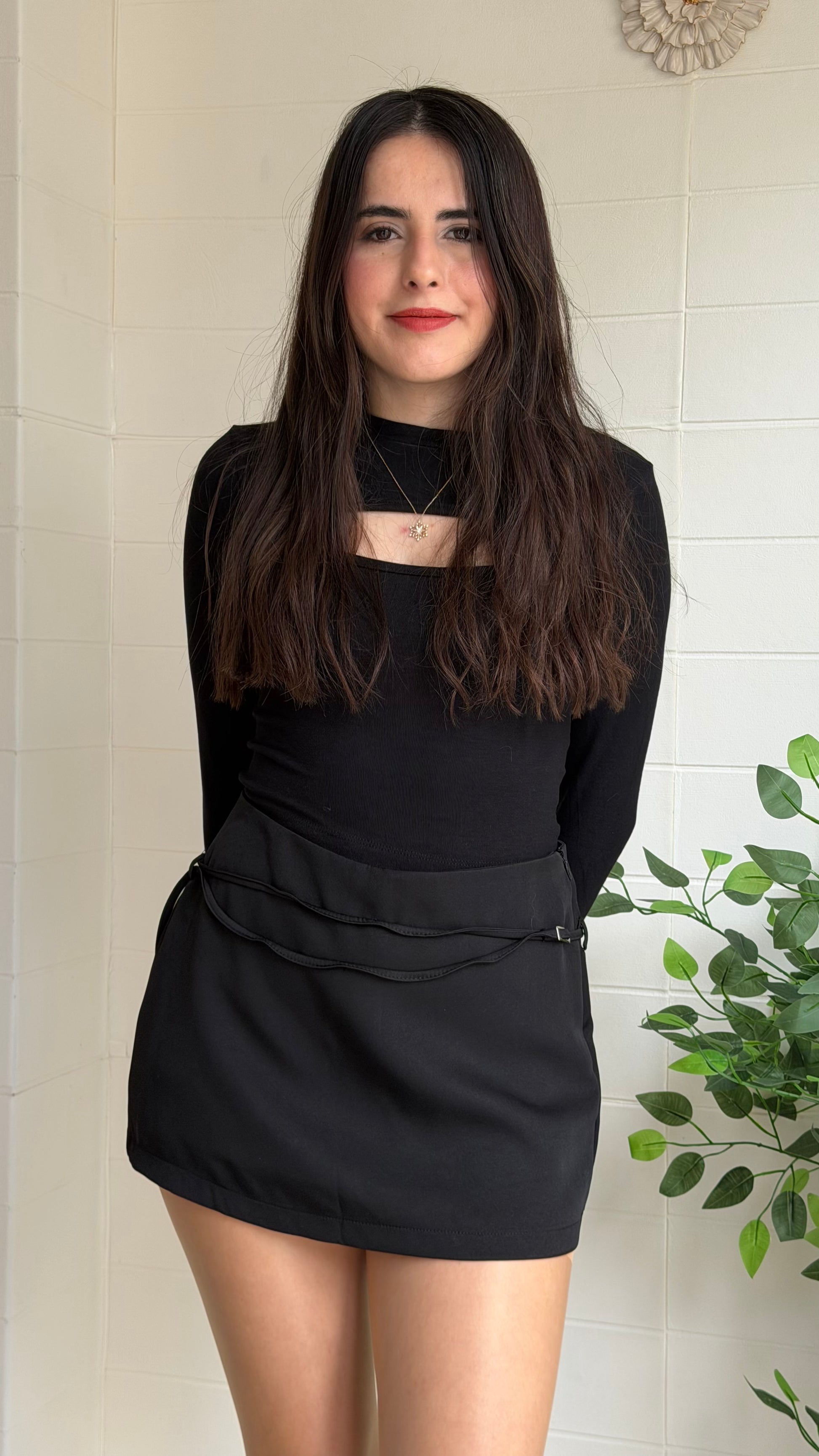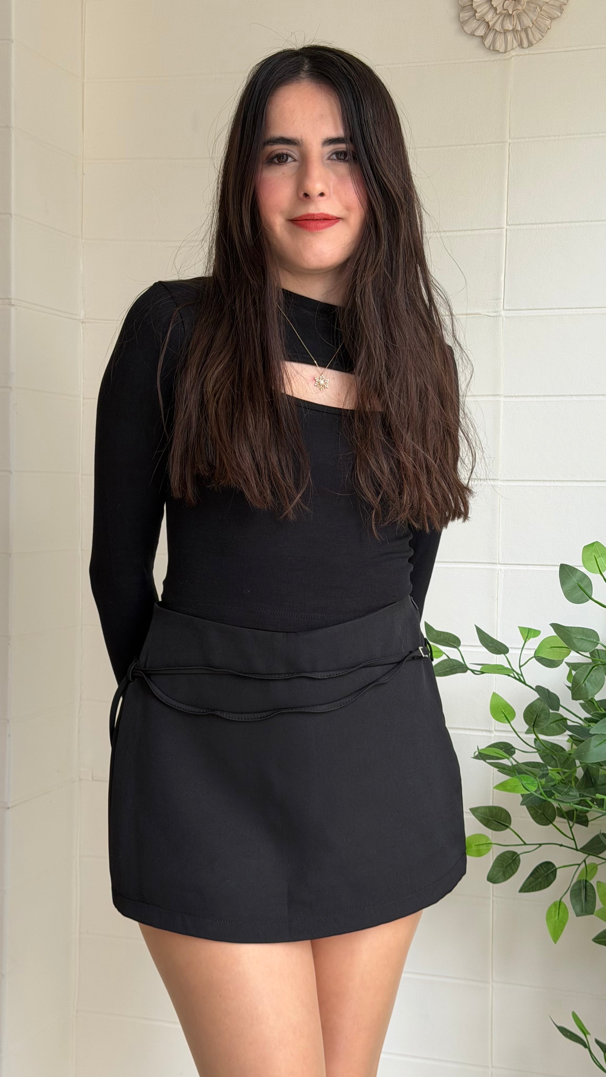 Kemerli, şık ve modern şort etek tasarımı. Yüksek bel /akışkan hatlar ile hareketli bir siluet yaratır. Günlük ve yarı-resmi kombinler için uygundur.