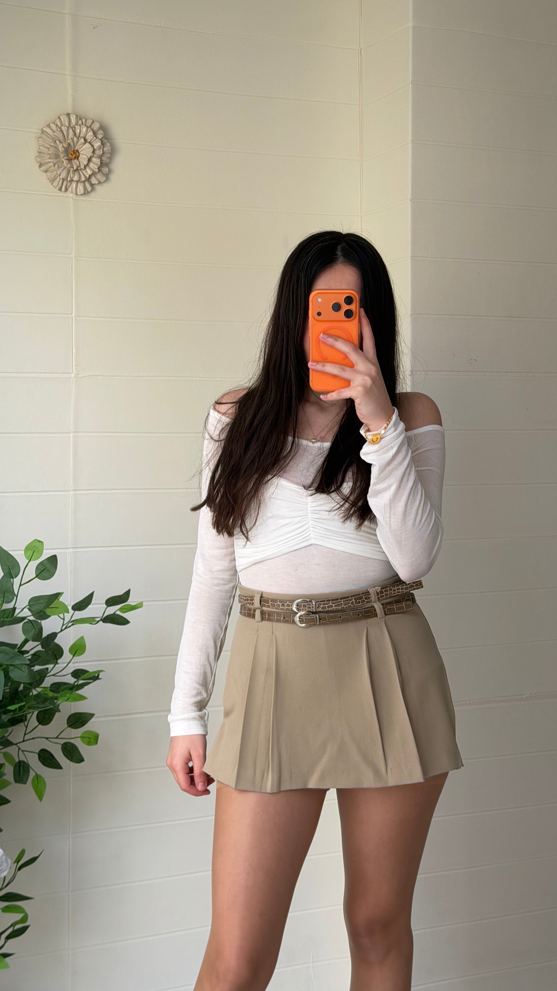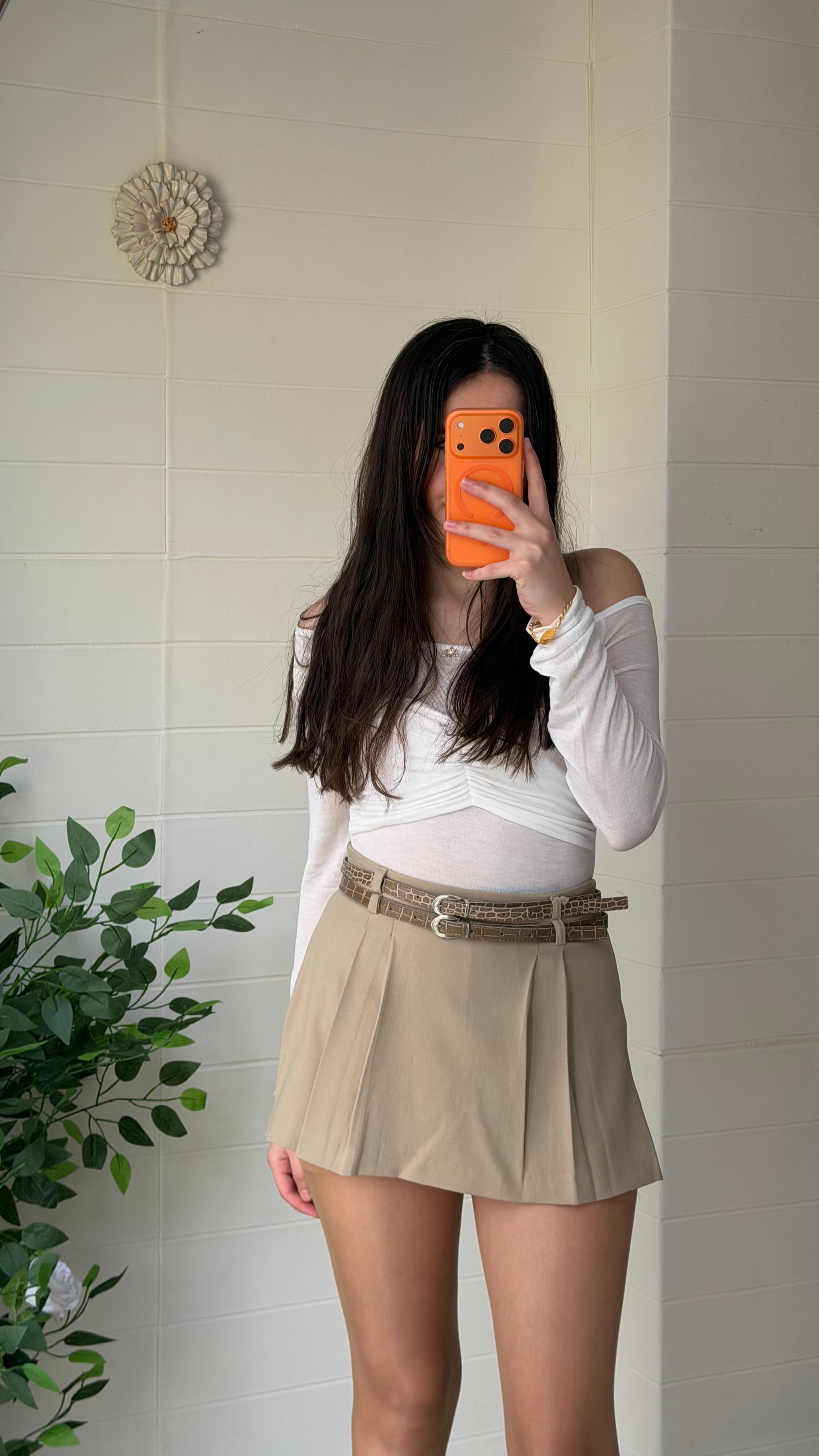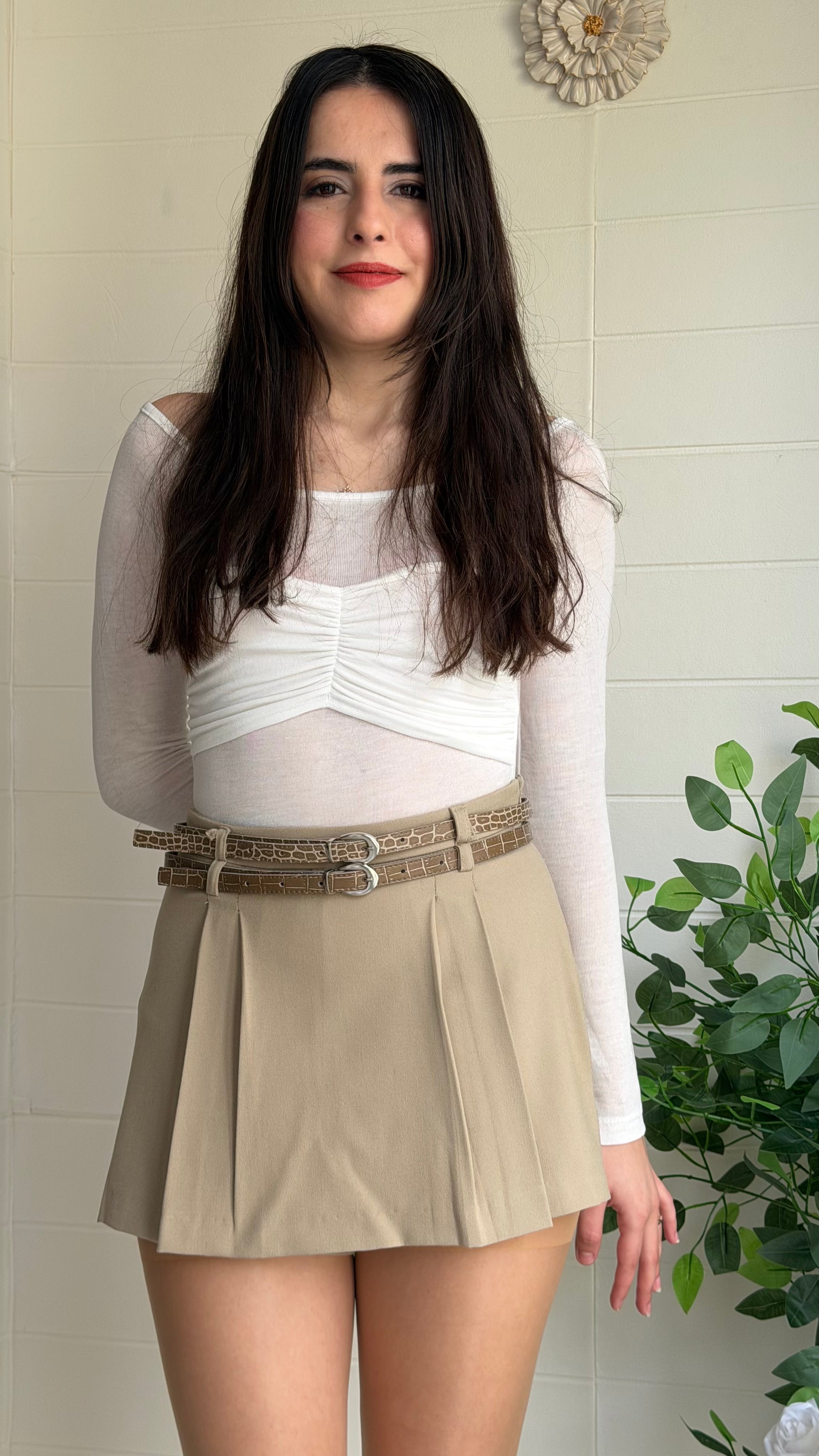 Kemerli ve pilili/drapeli kesimiyle şık bir siluet yaratan etek. Yüksek bel ve modern kesimi sayesinde günlük ve iş ortamlarında rahatlıkla kullanılabilir.