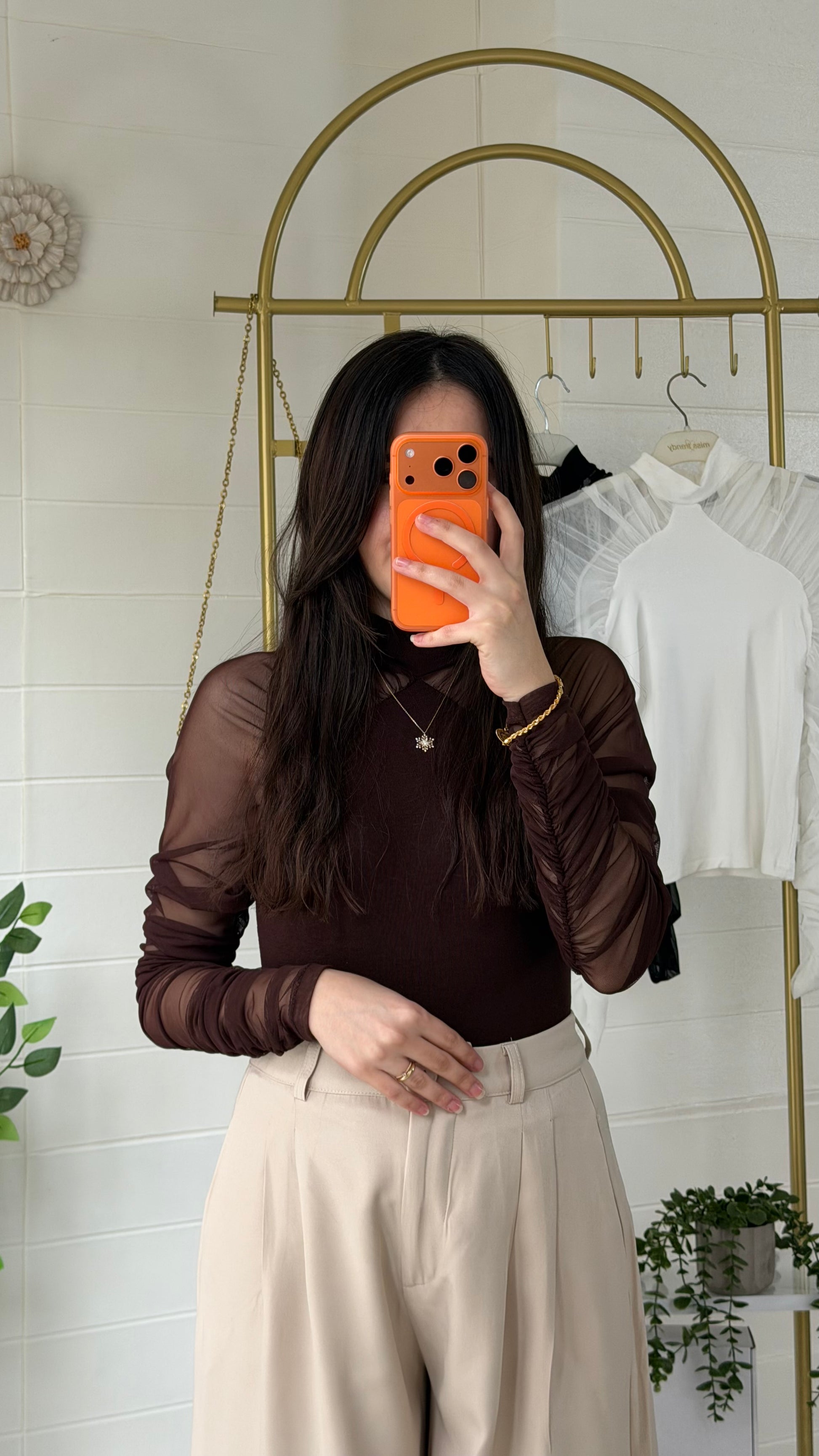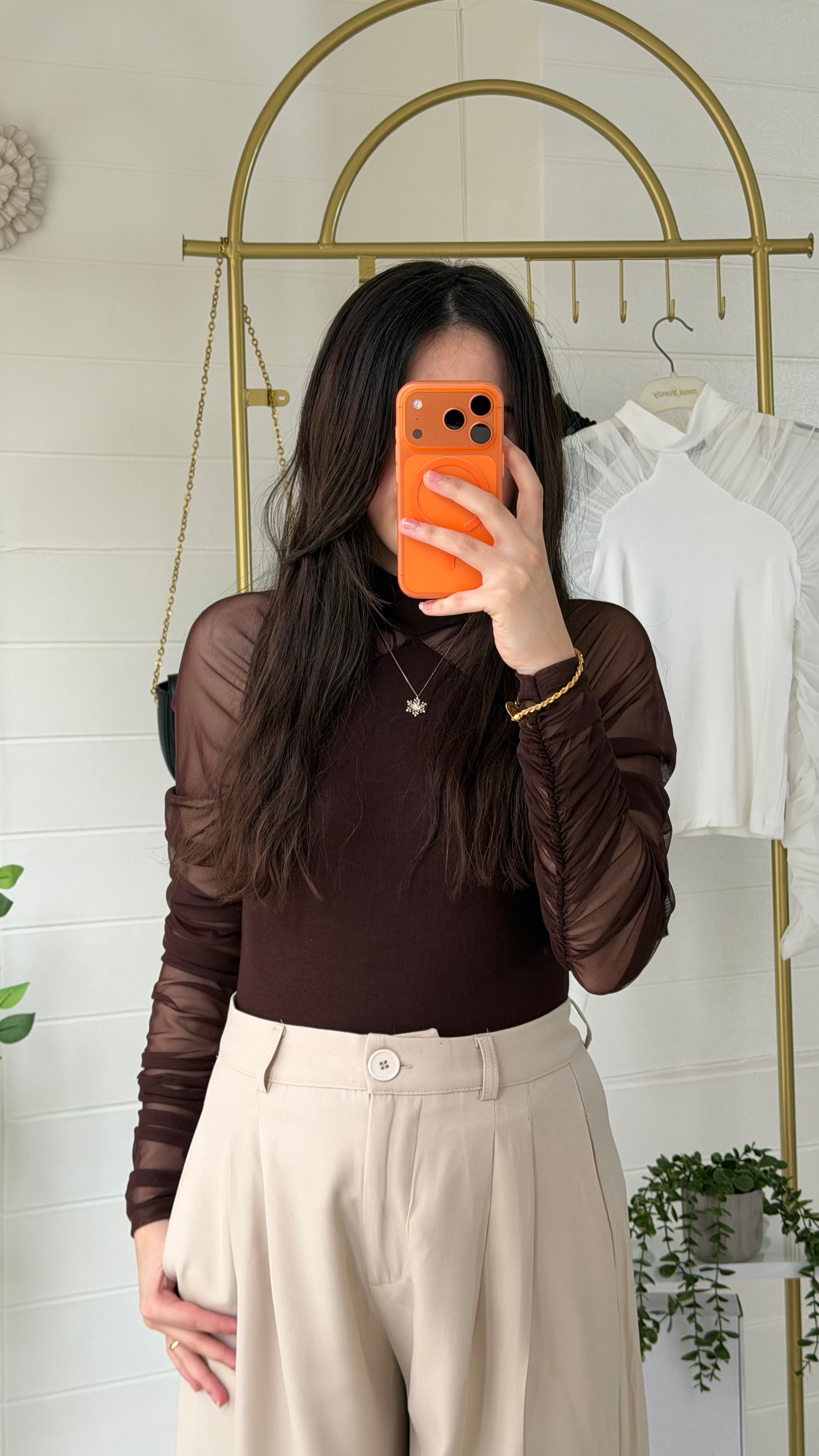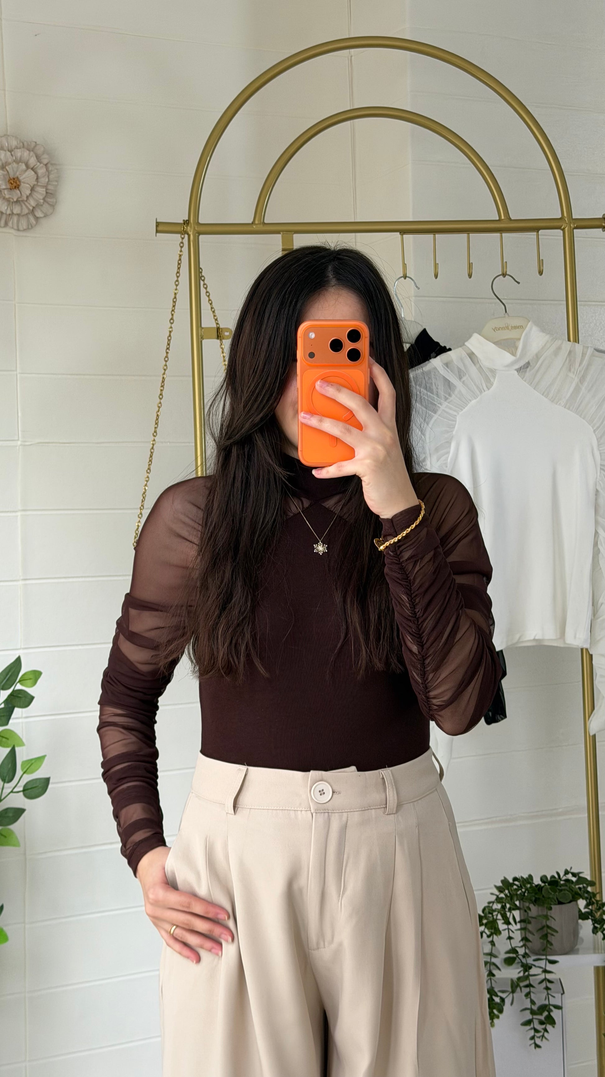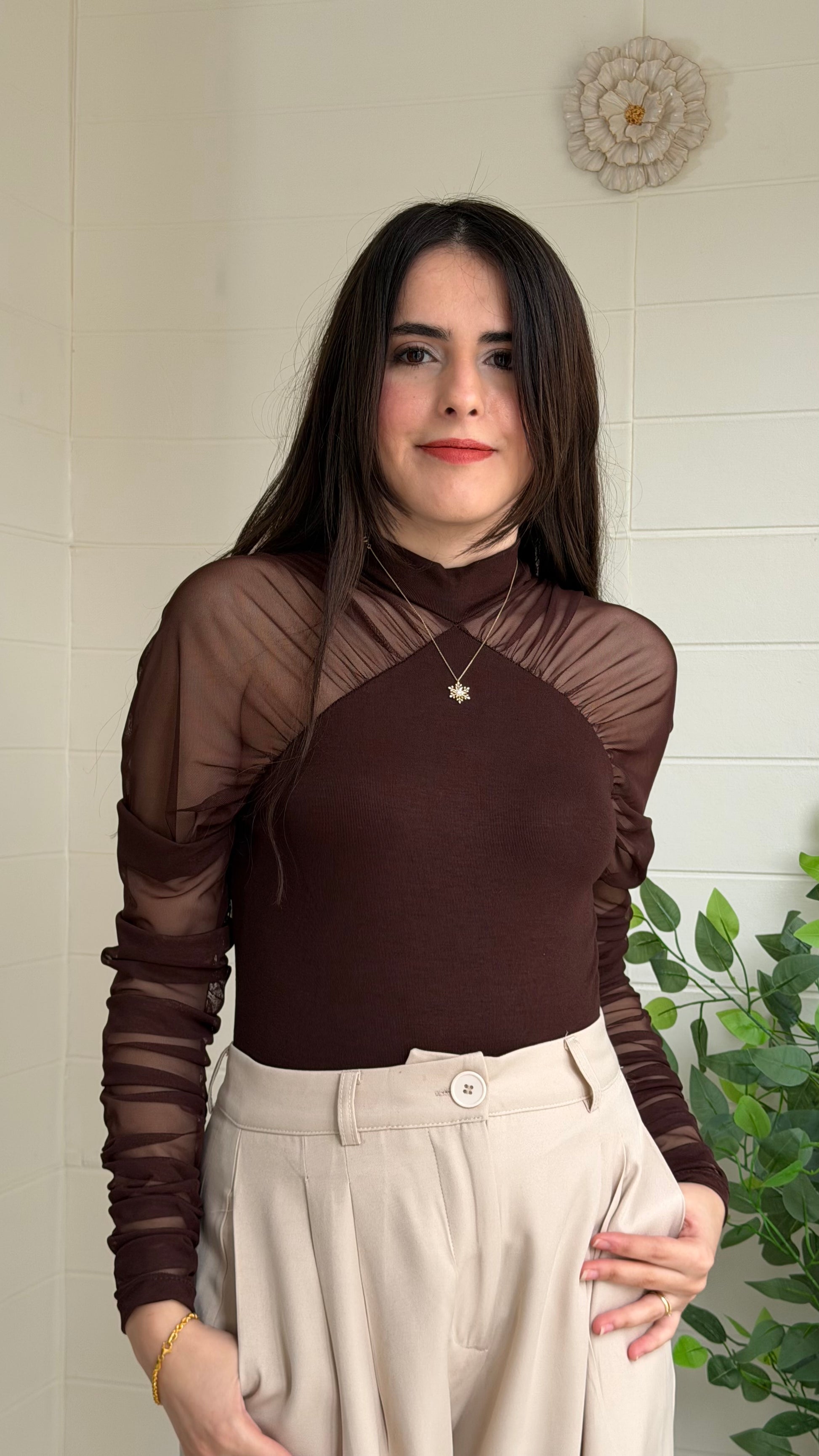 Yumuşak ve akıcı dokulu ribana bluz, yarı saydam tül kollarıyla modern ve zarif bir görünüm sunar. Vücuda uyumlu yapısı sayesinde günlük kombinlerden özel davet stiline kadar geniş kullanım alanı sağlar.