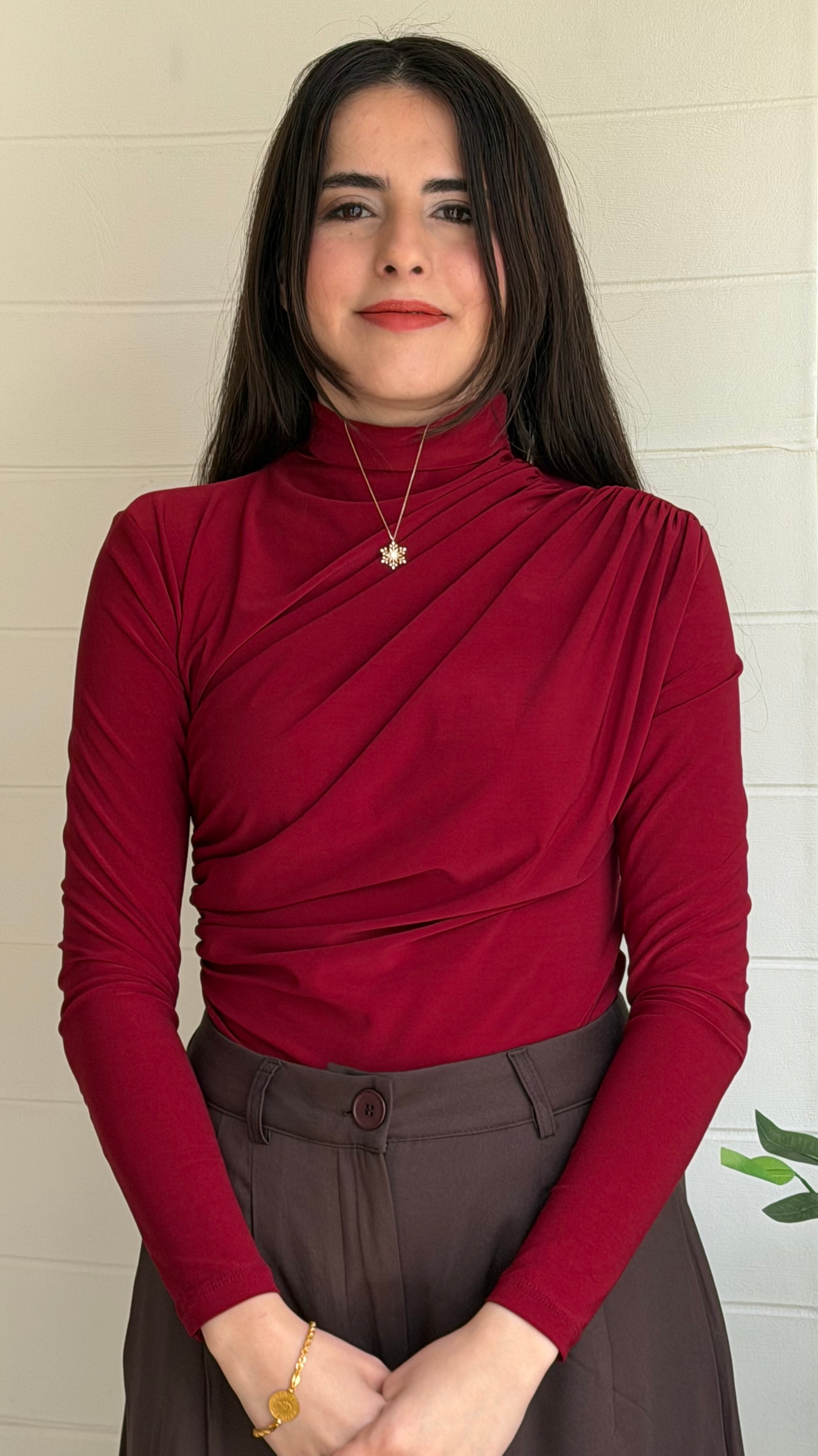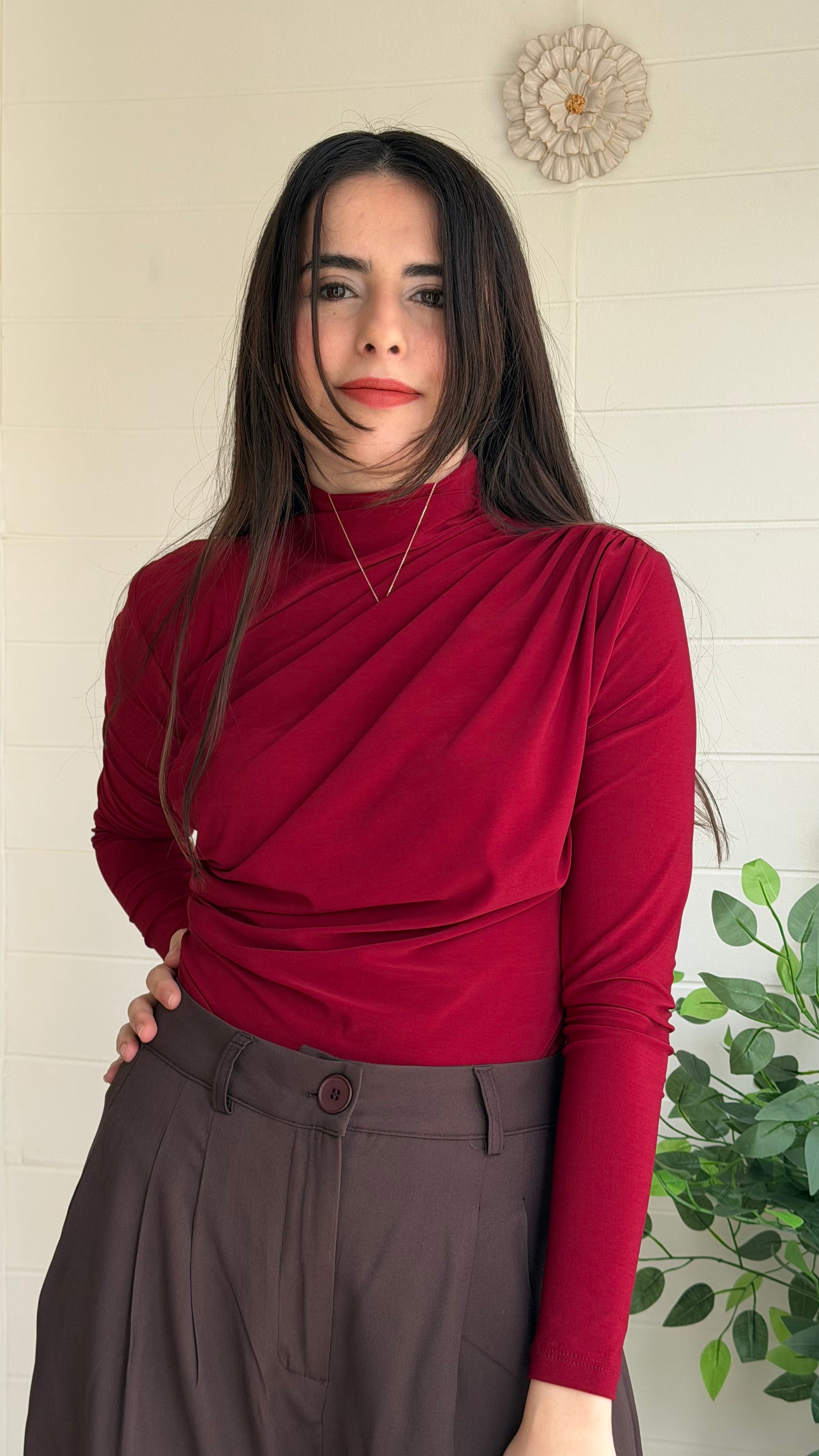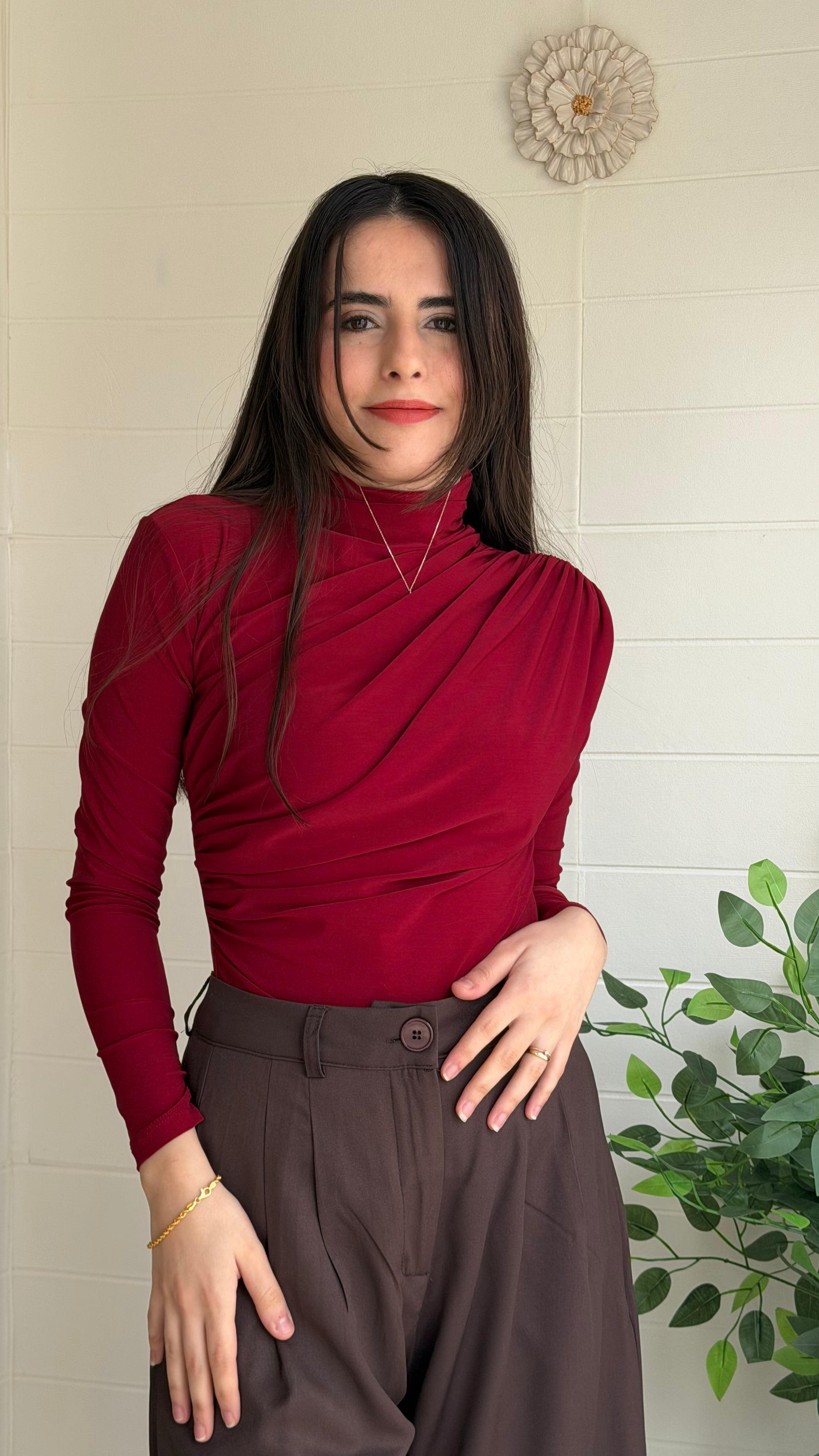 Omuz ve bel kısmındaki pile detaylarıyla zarif bir siluet oluşturan bu bluz, akıcı yapısı sayesinde vücut hatlarını nazikçe vurgular. Günlük stilinize şıklık katarken özel kombinler için de ideal bir seçimdir.