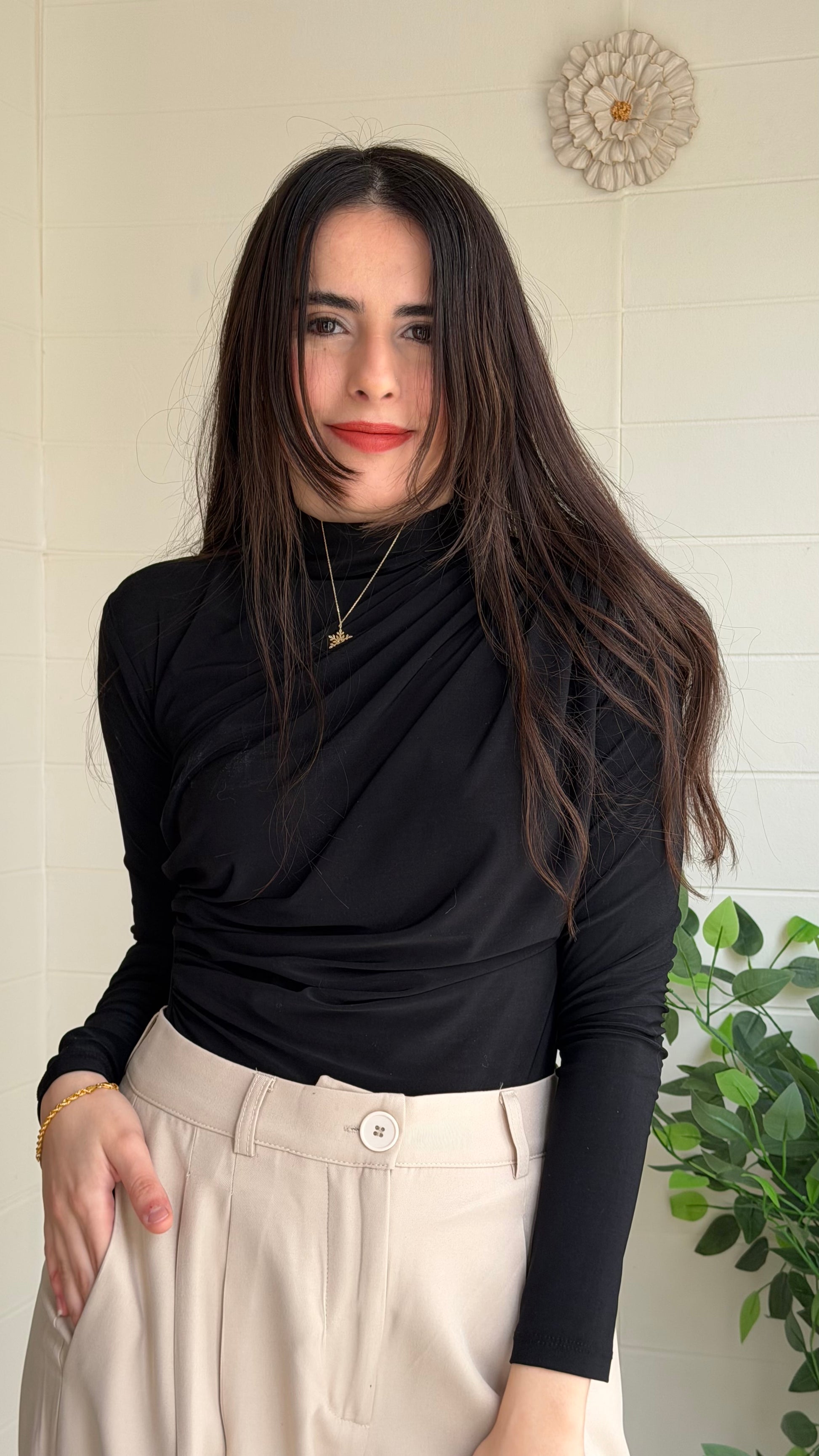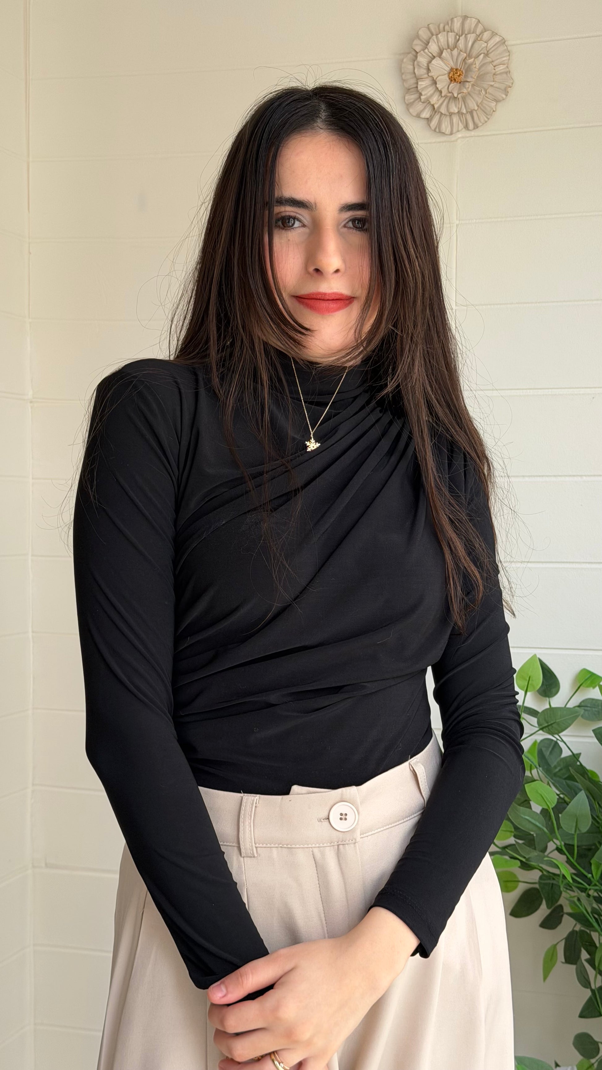 Omuz ve bel kısmındaki pile detaylarıyla zarif bir siluet oluşturan bu bluz, akıcı yapısı sayesinde vücut hatlarını nazikçe vurgular. Günlük stilinize şıklık katarken özel kombinler için de ideal bir seçimdir.