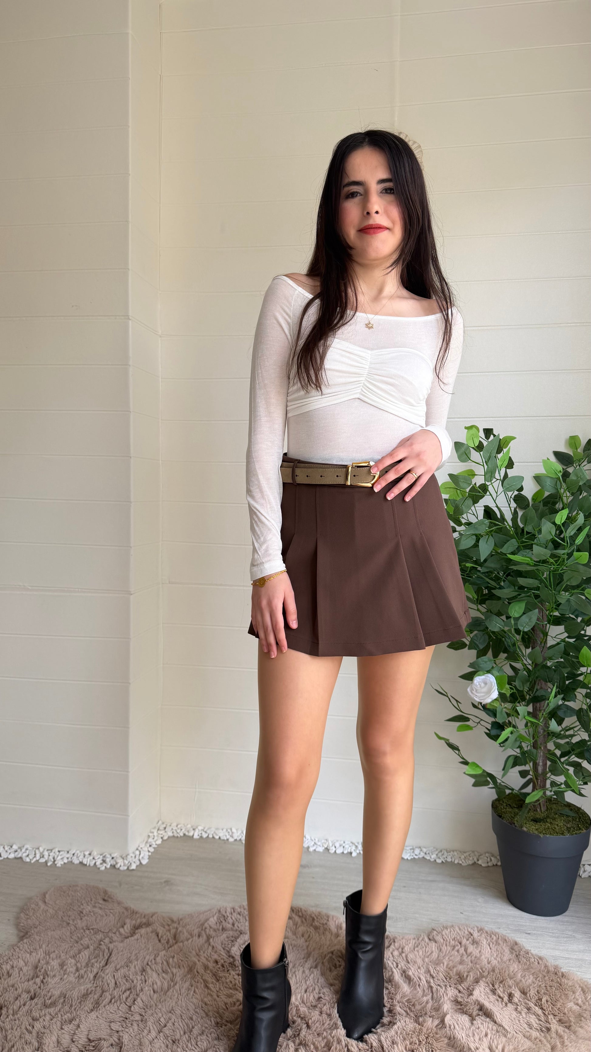 Pileli ve şort-etek karışımı tasarım; yüksek bel ve pileli detaylarla hareketli bir siluet yaratır. Günlük ve ofis kombinlerinde rahatlık sağlar.