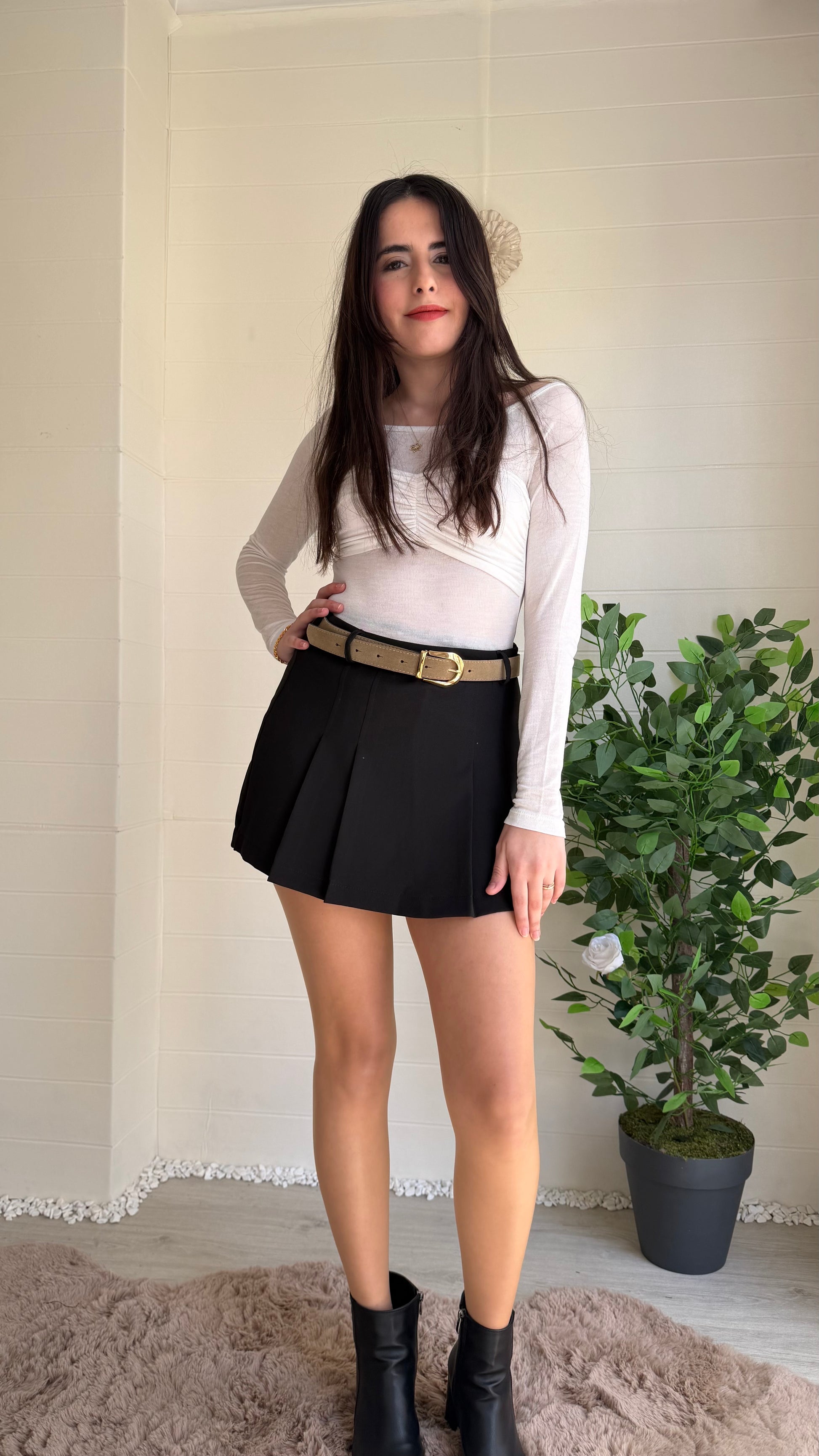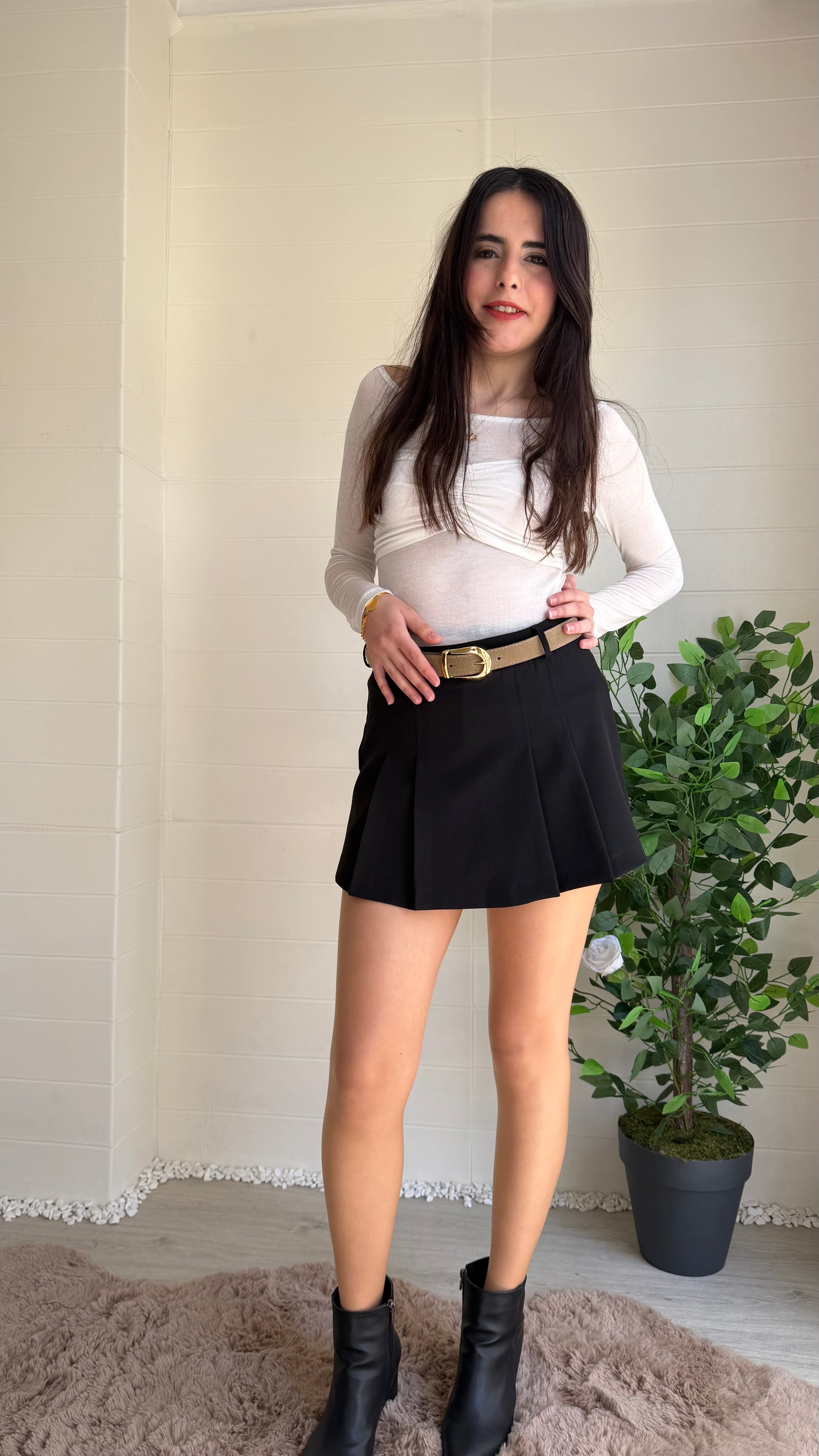 Pileli ve şort-etek karışımı tasarım; yüksek bel ve pileli detaylarla hareketli bir siluet yaratır. Günlük ve ofis kombinlerinde rahatlık sağlar.